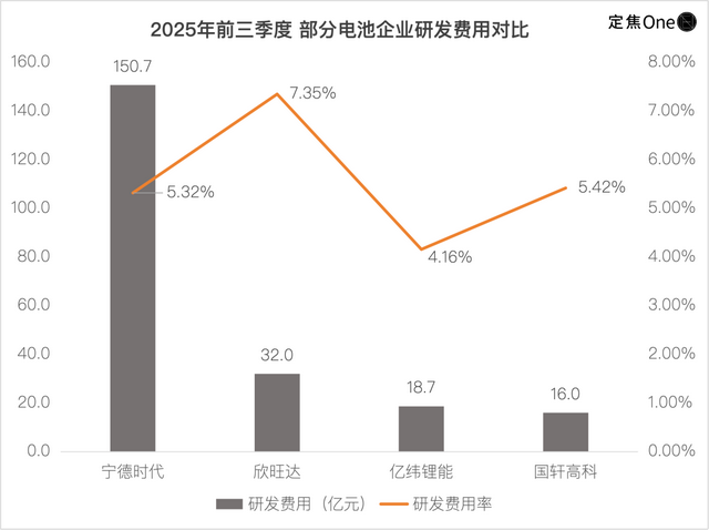 在电池这个资本和技术双密集的行业,今天的利润差距直接决定了明天的技术代差。2025年前三季度,宁德时代的研发投入高达151亿元,而二线厂商普遍仅在“20亿元级别”。