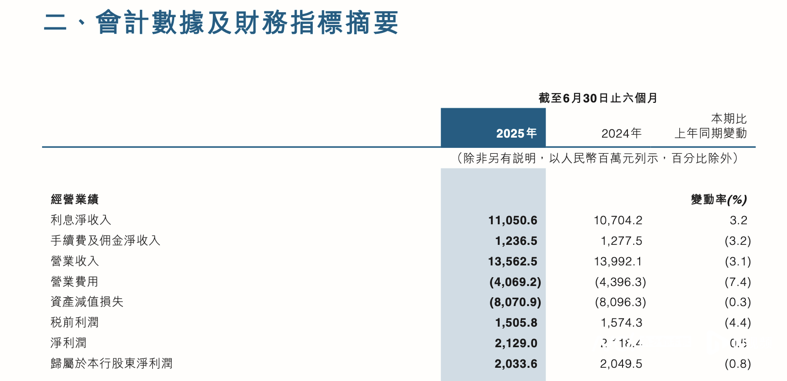 根据该行2025年半年报告,截至2025年6月30日,该行实现净利润21.29亿元,同比上涨0.5%;归母净利润20.34亿元,同比下降0.8%;营业收入达135.63亿元,同比降幅3.1%。