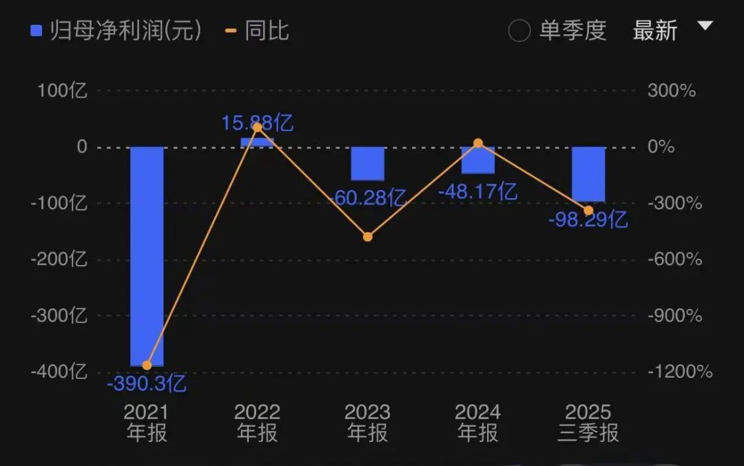 归母净利润为亏损98.29亿,超过2023及2024的全年亏损。