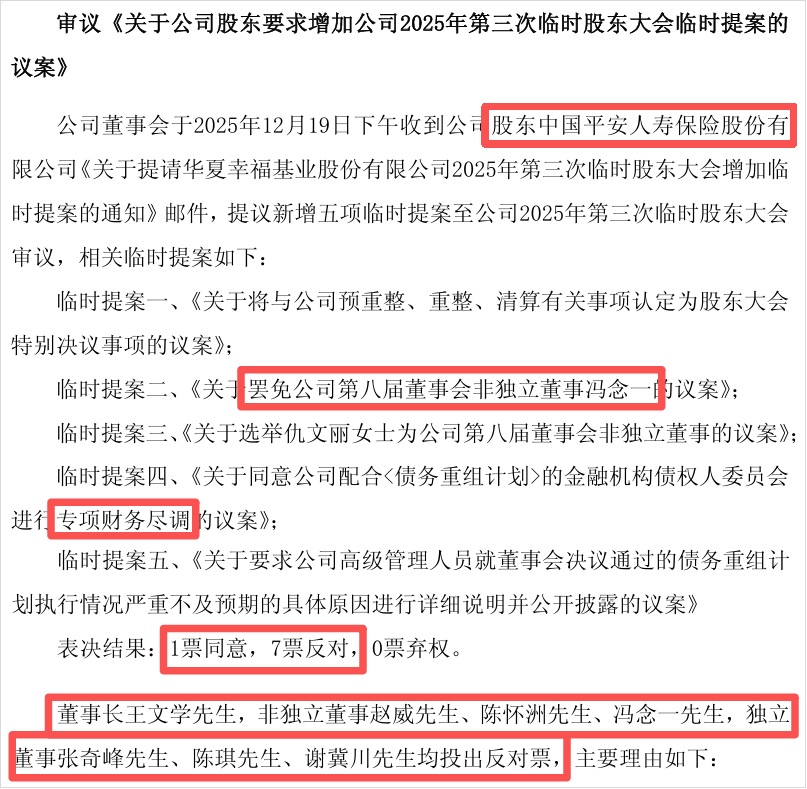 紧接着,平安对华夏幸福提出了5个临时议案,其中包括罢免在华夏幸福任职长达15年的非独立董事、对华夏幸福财务尽调等。