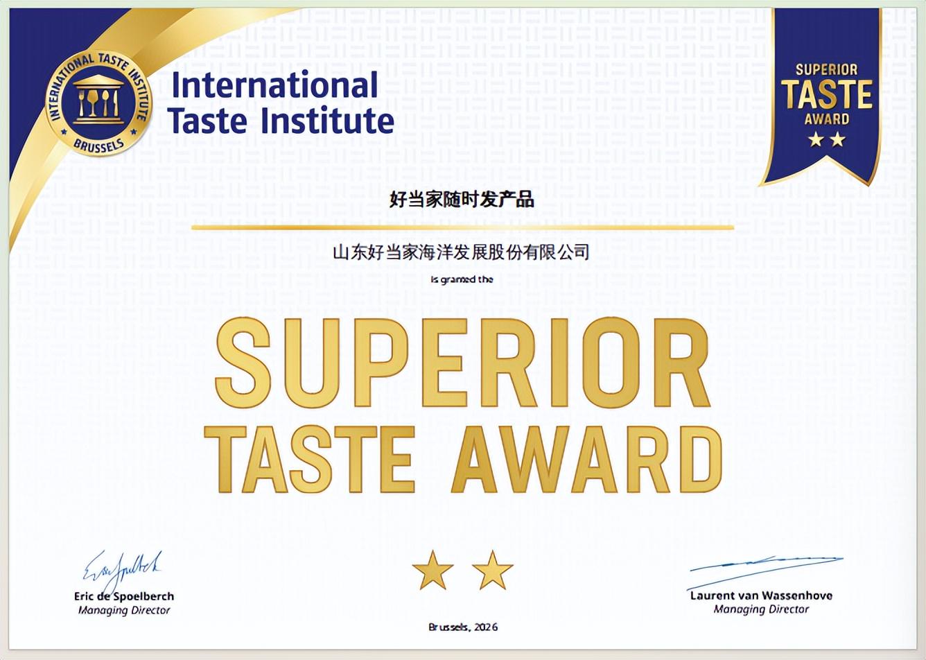 由全球200多位名厨与专家组成的评审团,在布鲁塞尔展开一场严格的盲测,好当家的一款海珍品最终在数千种食品中脱颖而出,为中国海洋食品赢得世界级品质勋章。