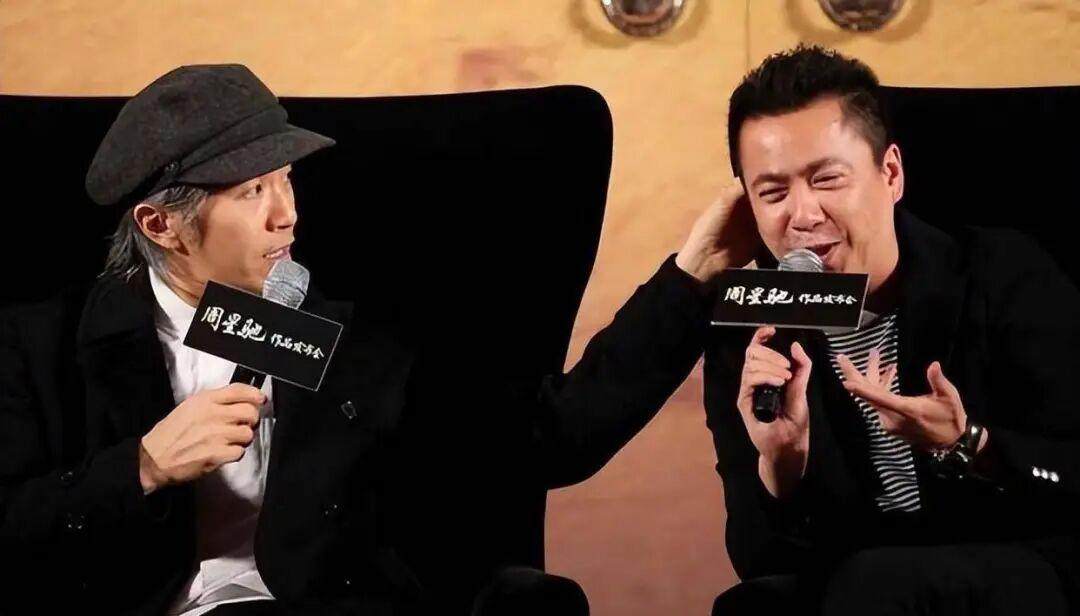 周星驰和王中磊在电影宣传现场