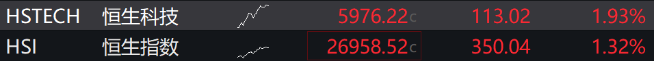 恒生指数高开1.32%,恒生科技指数涨1.93%。科网股全线走强,阿里巴巴、阿里健康涨近5%,小鹏汽车涨逾4%,金蝶国际、比亚迪股份涨逾3%。兆易创新H股上市高开45%。