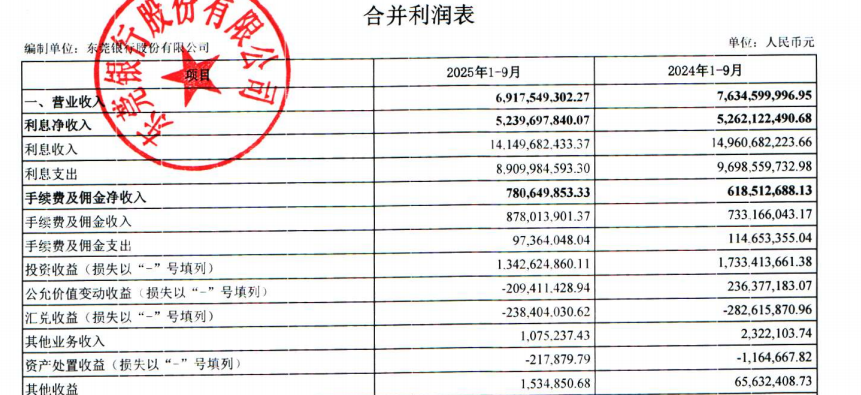 但到2025年前三季,市场环境发生变化,投资收益从上年同期的17.33亿元降至13.43亿元,公允价值变动收益更由盈转亏,录得亏损2.09亿元,直接加剧了业绩下滑。同时,利息净收入从52.62亿元降至52.4亿元,尽管核心非息收入的手续费及佣金净收入从6.19亿元增至7.8亿元,无奈体量较小难挽整体降势。