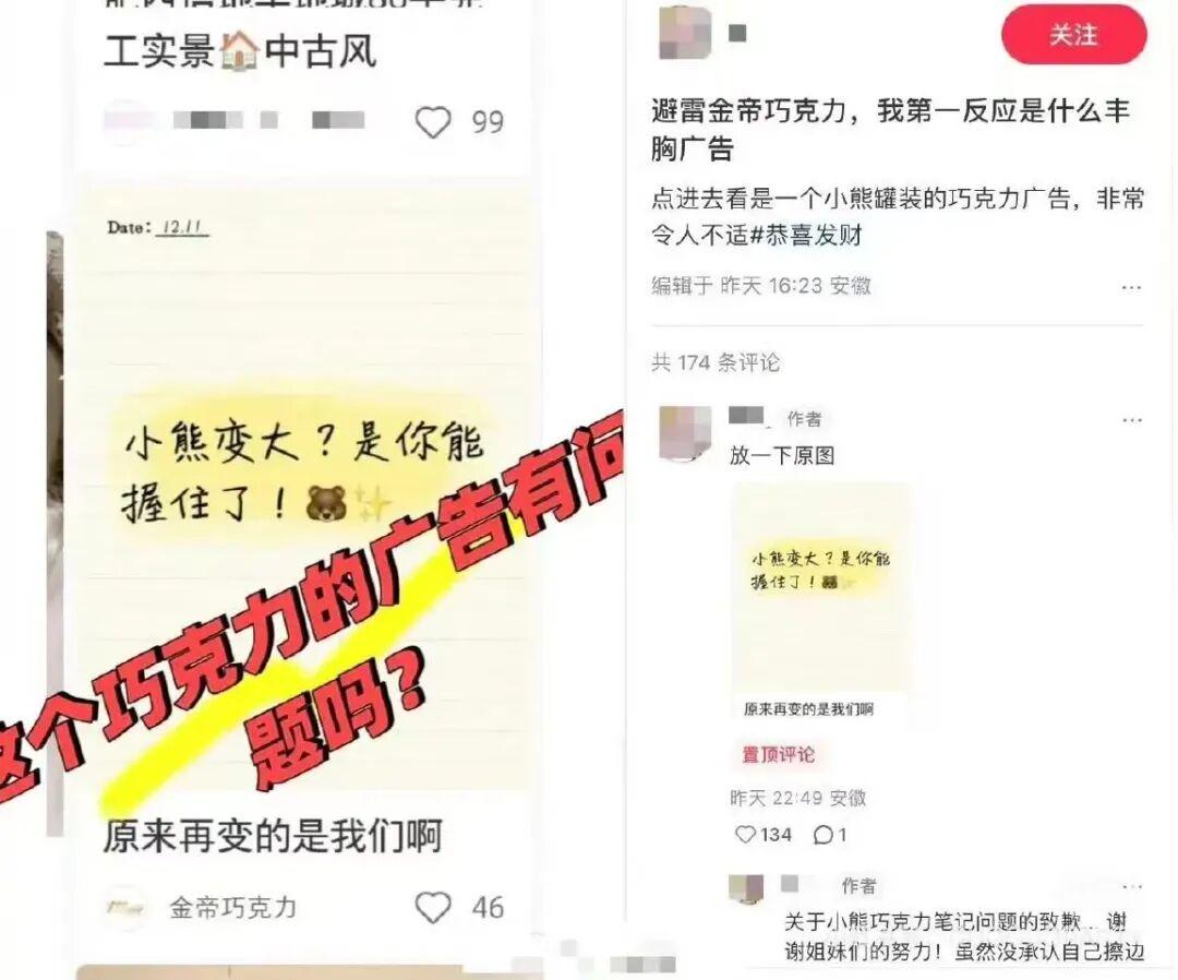 1月11日,有网友发现,童年品牌金帝巧克力通过社交平台发布的内容中疑似含有“擦边”广告语,写道“小熊变大?是你能握住了!”有消费者认为是利用谐音在玩梗,引发不少网友反感。