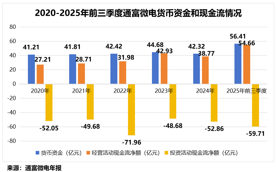 不过,2020-2025年前三季度,通富微电经营活动产生的现金流净额始终无法完全覆盖同期投资活动产生的现金流净额。