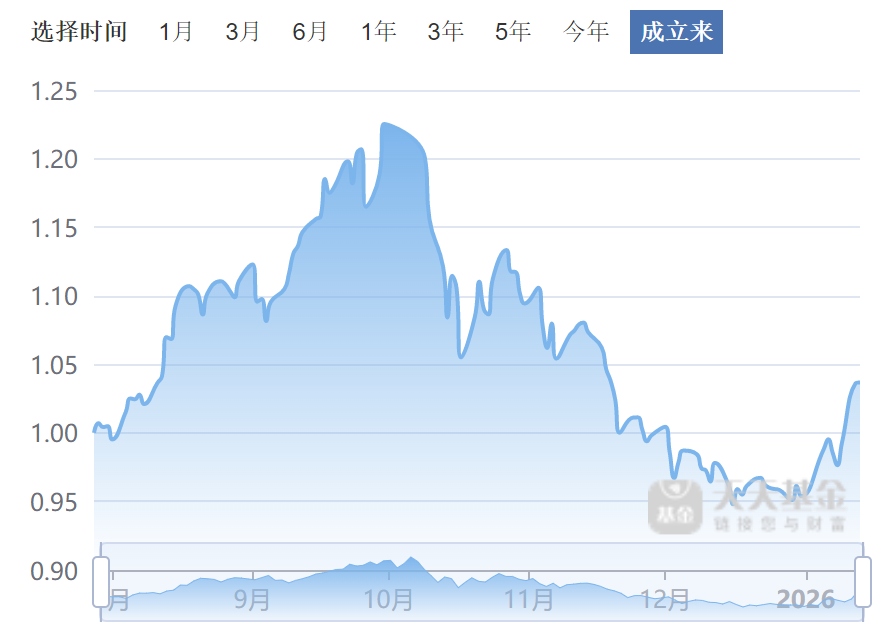 截至2026年1月13日,该基金净值仅为1.0396元,累计收益约4%,与冠军基的辉煌形成鲜明对比,到底是怎么回事?