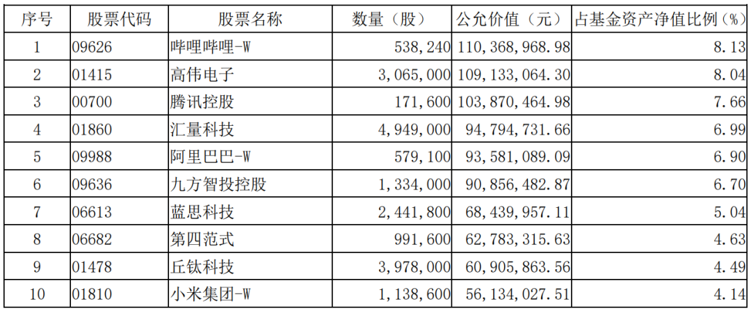 但是,建仓期恰逢市场高点。以去年三季报前十大重仓股推算,买入成本普遍偏高。哔哩哔哩、腾讯控股、汇量科技、阿里巴巴、蓝思科技买入后股价继续上涨,带来主要收益;而高伟电子、九方智投控股、第四范式、丘钛科技或均有浮亏,小米集团跌幅最惨,从建仓期到今年1月中旬已蒸发超30%,成为拖累净值的最大因素之一。