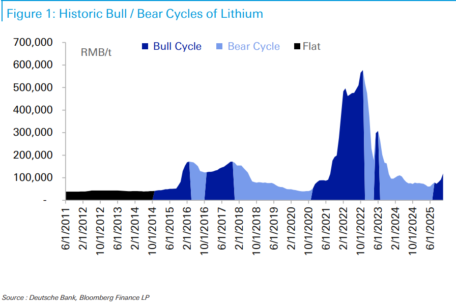 锂市场的老玩家都深知这个行业的残酷周期性——这是一种“不成熟”的大宗商品,需求往往呈两位数增长,而价格却极不稳定。然而,德意志银行认为,虽然历史总是押韵,但这一次的旋律可能真的变了。