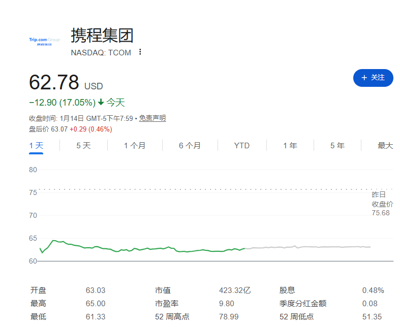 据国家市场监督管理总局公告,根据前期核查,依据《中华人民共和国反垄断法》,对携程集团有限公司涉嫌滥用市场支配地位实施垄断行为立案调查。消息一出,资本市场随即震荡。1月14日,携程港股收盘下跌6.49%,美股盘前一度大跌超15%。