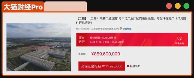 常熟市通达路1号,也就是观致汽车的厂房资产以及内部设备等,上了法拍,一拍10多亿没卖出去,进入二拍就折价到了8亿多。