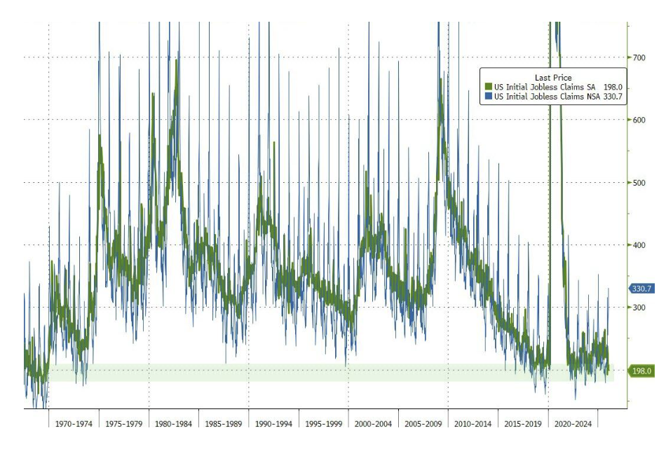 与此同时,持续领取失业救济人数维持在188万的水平,持续低于190万的关键阈值,进一步印证了劳动力市场的整体稳定性。