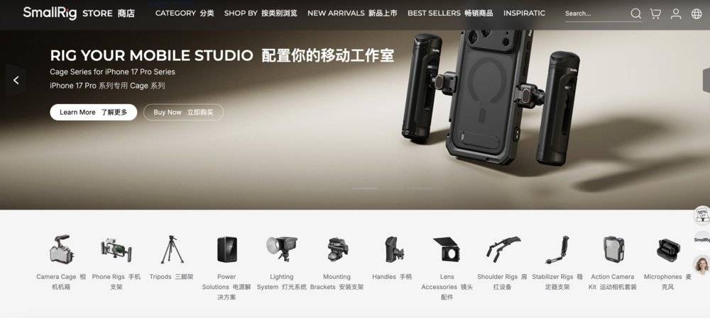 这家公司叫SmallRig斯莫格(以下简称斯莫格),2013年成立,主营摄影摄像器材和影像主机配件。