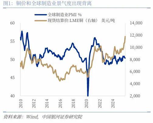 参考银河证券的研究,结论就是这次的铜价和全球制造业景气度,出现了显著背离。