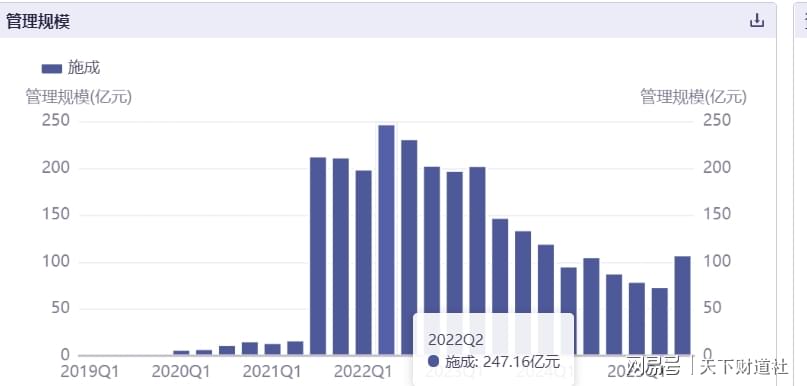 同花顺iFinD显示,施成的个人整体管理规模已从2022年上半年末的约247亿元,降至2024年末的约88亿元,降幅接近65%。尽管2025年三季度末回升至约107亿元,但与高峰时期相比,仍缩水近57%。