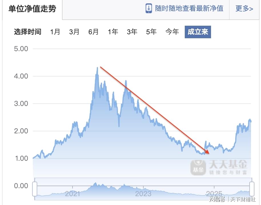 进一步细分可知,从2019年底成立至2021年3月底,这只基金的主要基金经理是伍智勇,这期间涨幅高达98%;而从那之后,这只基金变为施成单独管理,这几年基金净值出现大幅回调。