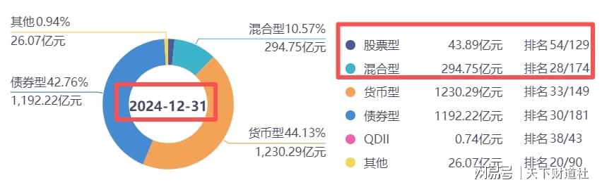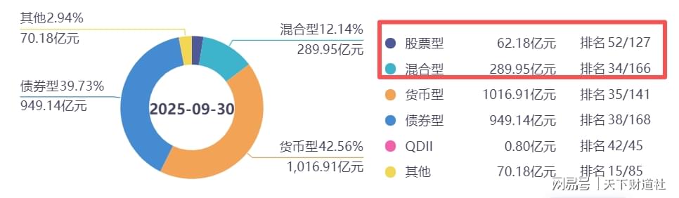 同花顺iFinD显示,截至2025年三季度末,国投瑞银的管理规模约为2390亿元,而权益类产品(包含混合型、股票型)合计仅约352亿元,占比不足15%。