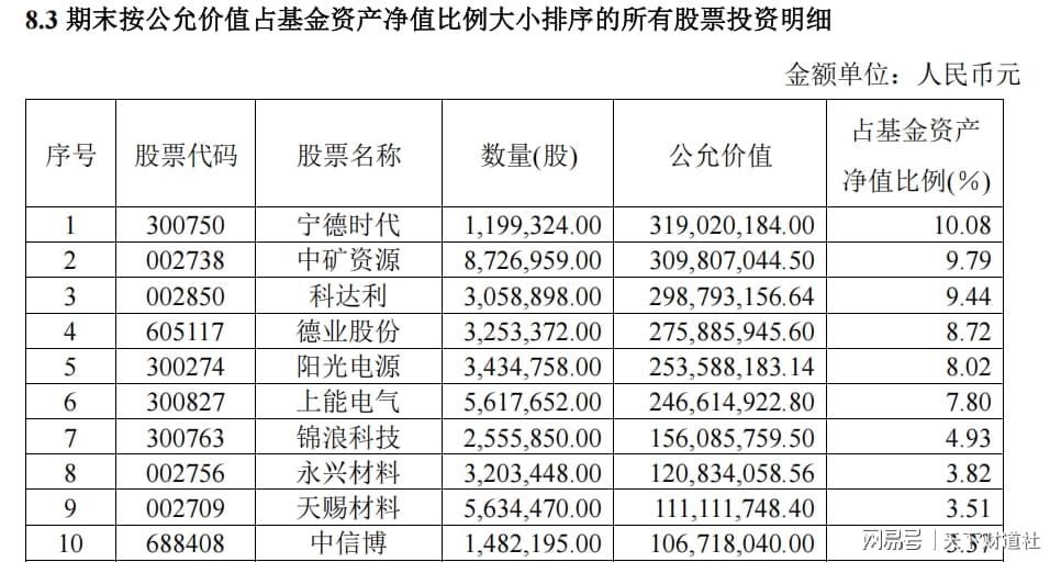 基金公告显示,国投瑞银新能源混合2024年末前十大重仓基本集中在新能源赛道,覆盖锂电池、光伏、储能等细分领域,比如宁德时代、阳光电源等龙头标的均在列。