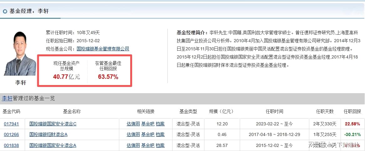 而权益规模与业绩表现相对突出的李轩,仅管理国投瑞银国家安全混合 1 只产品,业绩依赖国防军工板块景气度,难以形成规模化支撑。