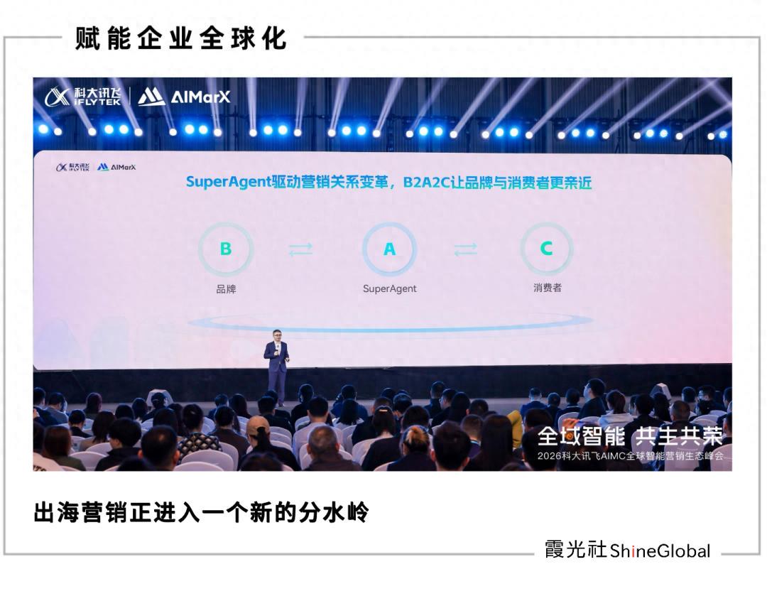 在2026科大讯飞AIMC智能营销生态峰会的生态展区,就集结了全球来自3C科技、电商零售、智能科技、AIGC 应用、品牌出海等领域的生态伙伴,共同构成了一个围绕SuperAgent驱动的价值共生“朋友圈”,共同直面海外营销的复杂。