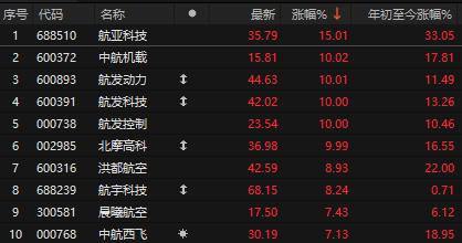 航发集团旗下动力、控制、科技三个标的集体涨停,带动航空航天装备板块大涨。