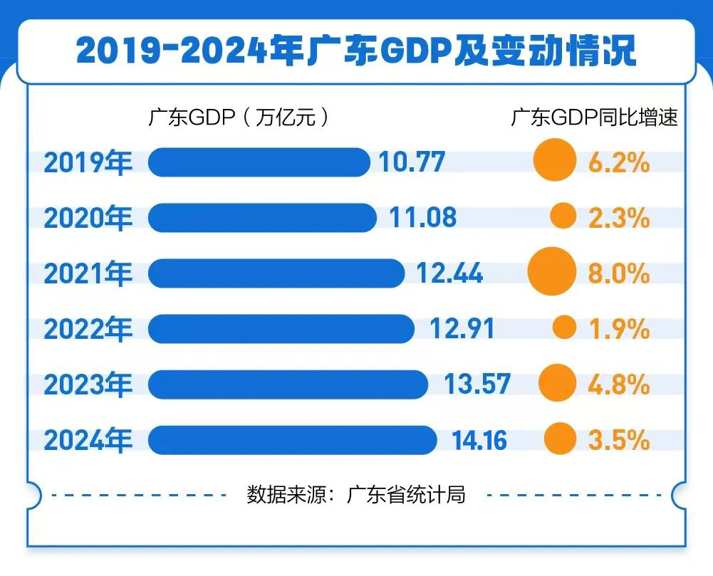 第二,广东经济发达,居民生育有底气。2024年,广东地区生产总值迈上14万亿元新台阶、连续36年居全国首位。这个体量什么概念?放在全球各大经济体中,可排进前十,超过俄罗斯、澳大利亚等国家。时至今日,广东GDP已全面赶超“亚洲四小龙”。而且,2024年广东经营主体突破1900万户,其中企业超830万户,总量均居全国第一。