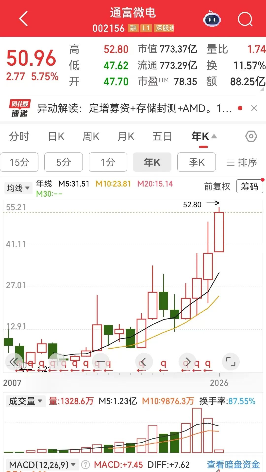对于这份定增计划,市场给予了积极回应。通富微电在1月16日强势涨停,单日成交金额达80.14亿元,这反映出资金对其技术落地与扩产前景的高度看好。