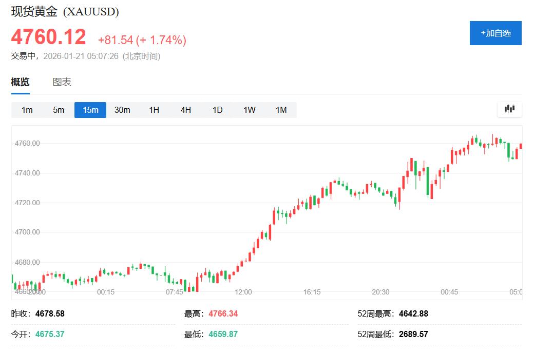 达利欧讲话当天,周二美股午盘,黄金连续第二日创盘中历史新高。现货黄金史上首次涨至4760美元上方,日内涨约2%,体现了投资者在美欧可能爆发关税战之际纷纷涌入避险资产。