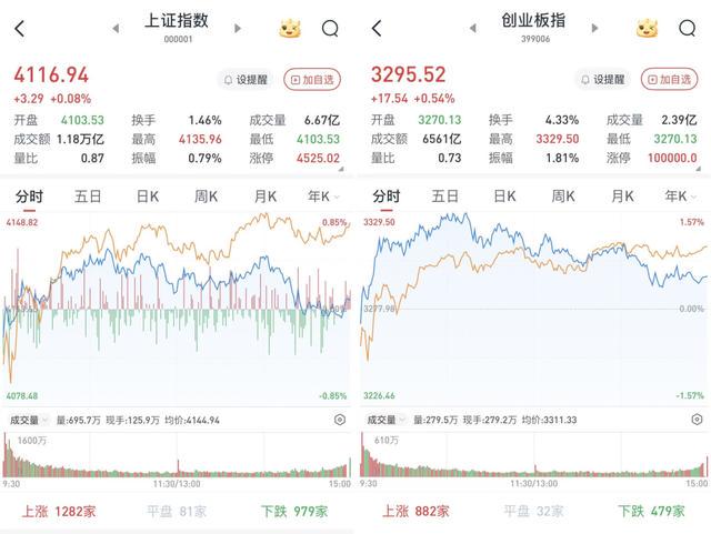 至收盘,上证综指涨0.08%,报4116.94点;科创50指数涨3.53%,报1535.39点;深证成指涨0.7%,报14255.13点;创业板指涨0.54%,报3295.52点。