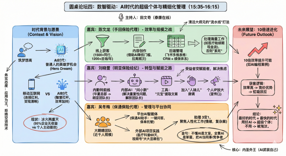 作为一名曾经误打误撞进入互联网保险行业的人来说,一直期待有一天能深度参与到这个行业的变革中来。在这个 AI 时代,我却愈发深刻地意识到:变革的答案往往不在高耸的战略云端,而在每一个个体借助 AI 进化为“超级个体”的微观瞬间。这种由内而外的重塑,才是行业最深刻、最不可逆的进化。