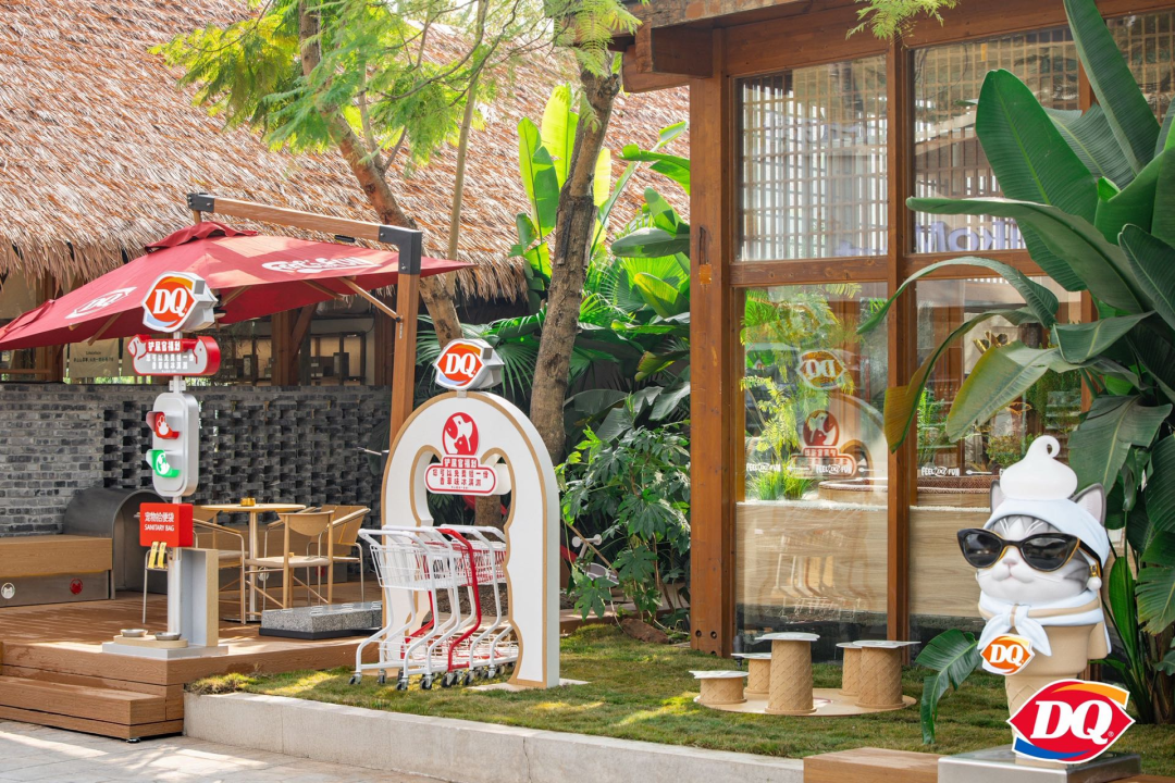 近期, DQ采用一店一设计的多样风格,陆续入驻一系列年轻高人流商圈,包括夜店风格的上海富民路店、萌宠与户外休闲的成都麓湖店、树林禅风的佛山岭南八图里店、搭配定制蛋糕与大量萌宠装置的厦门SM商场店等门店。 在FEEL THE FUN的品牌调性下进行定制化设计,致力于将DQ品牌发展为提供年轻人情绪价值的选择, 展现不同物业及商圈的特殊风貌。尤其最值得一提的,超过250家门店已融入宠物元素的设计,提供铲屎官福利的免费冰淇淋,以及正开展宠物相关的公益行动等,致力于成为宠物友好领域最具有代表性的连锁餐饮品牌。