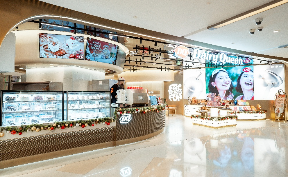 在DQ上海环贸iapm商场门店,新店采用镜面与灯光交织的设计元素。在冬日的饭后,点上一块萌趣小蛋糕,搭配一杯咖啡或季节限定热饮,呈现“FEEL THE FUN”的独特品牌乐趣。