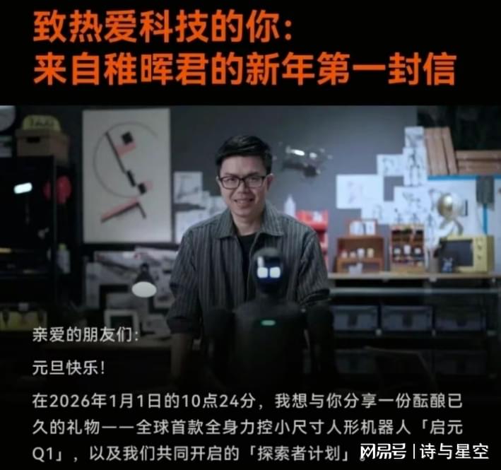 12月31日,彭志辉(B站up主稚晖君)宣布,公司将以“上纬启元”品牌正式进军个人机器人赛道,并发布全球首款全身力控小尺寸人形机器人“启元Q1”。