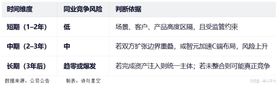 值得注意的是,一方面,机器人业务尚无收入,商业化路径和时间表尚存在不确定性,若传统材料行业回暖,可能削弱转型资金支持;另一方面,同业竞争与治理独立性还需持续经受监管检验。