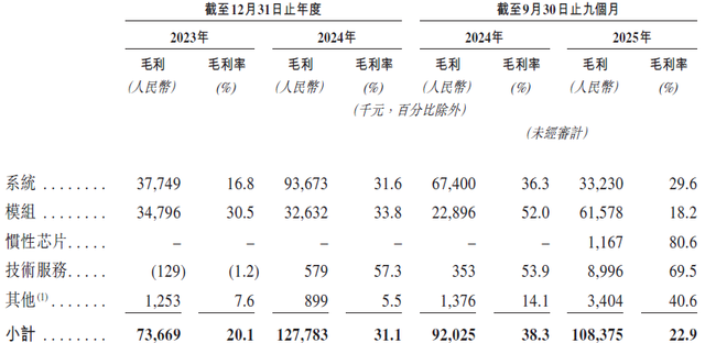 导远科技的收入结构在2025年发生剧变,毛利率较低的车载定位模组产品收入占比激增,而毛利率较高的系统产品收入被大幅挤压。这一结构性变化,叠加为获取订单而进行的激烈价格竞争,导致其整体毛利率在2025年前三季度暴跌15.4个百分点。