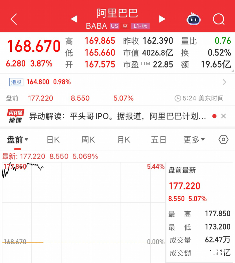 1月22日,有消息传称,阿里巴巴集团已决定支持旗下芯片公司平头哥未来独立上市。知情人士透露,阿里巴巴计划先将该部门重组为一家由员工部分持股的企业,随后,将考虑启动IPO,但具体时间尚不明确。南都N视频记者就此向阿里方面核实情况,截至发稿未收到回复。消息传出后,截至发稿,阿里巴巴美股盘前涨超5%。