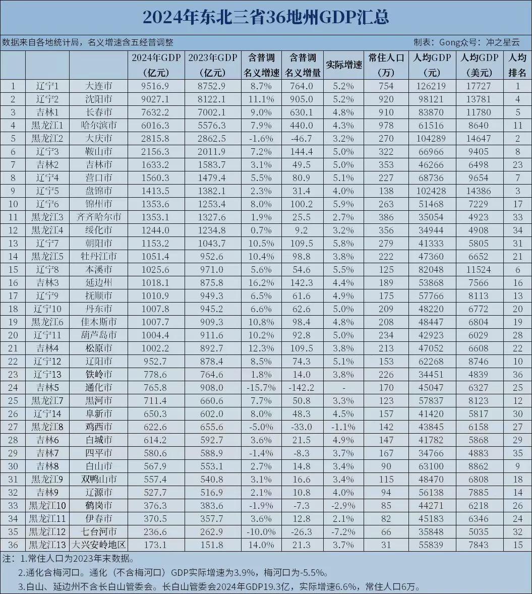 数据显示,2015年之前,大连都还能跻身全国前20强;2000年时,沈阳、大连、哈尔滨差不多都还能进入全国前20强;更早时期,东北F4,都是全国十强城市。