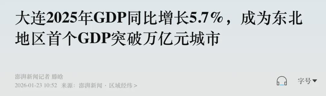 日前,大连市统计局发布消息称,2025年,大连市实现地区生产总值10002.1亿元,按不变价格计算,同比增长5.7%。