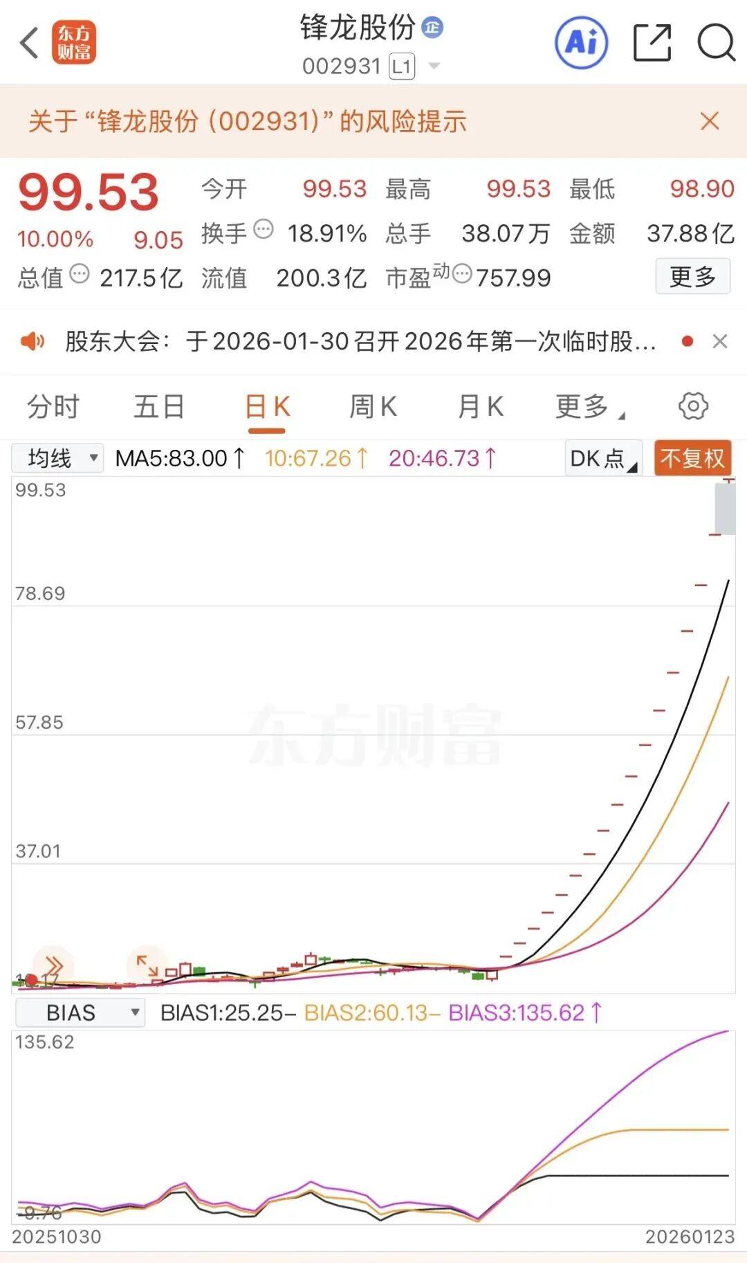 自2025年12月启动行情以来,锋龙股份在短短20余天内上演了一场资本狂欢。截至2026年1月23日,公司股价已连续收获18个涨停板。