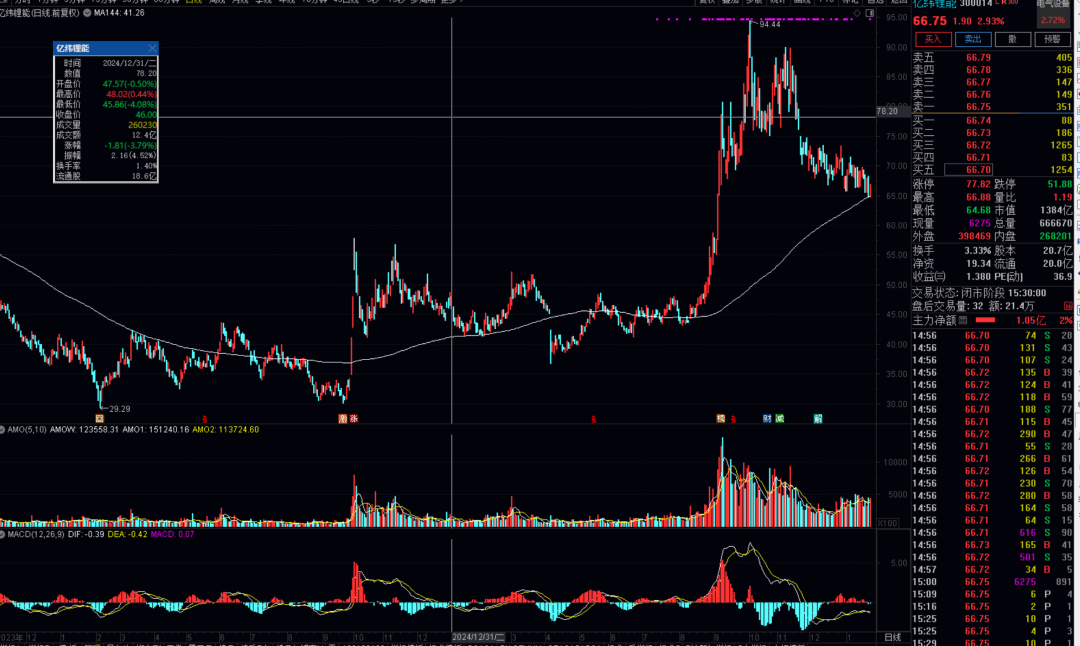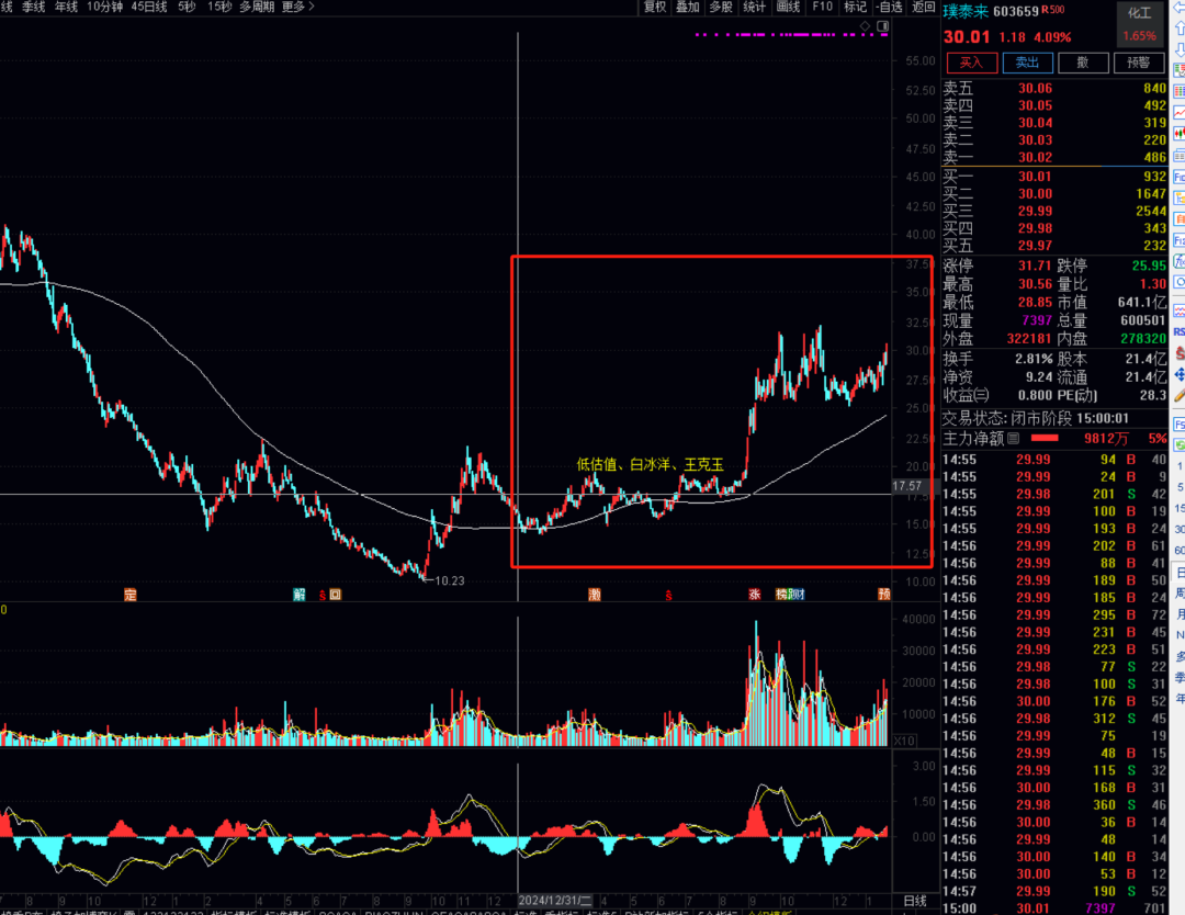 从股价走势来看,亿纬锂能同样符合白冰洋“筑底后布局三浪上涨”的偏好,其布局时点恰好处于股价启动前夕。