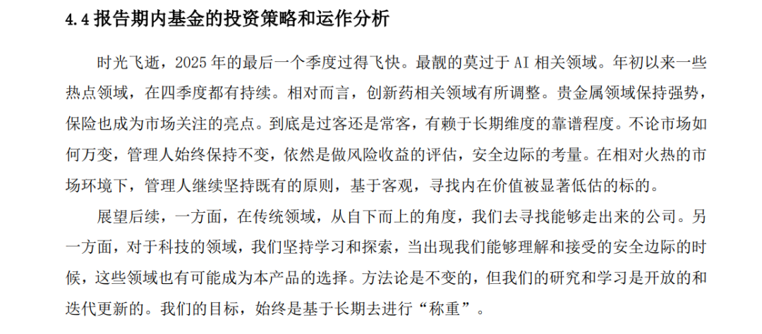 另外白冰洋一如既往的强调,“方法论始终不变,基于内在价值的选股,寻找内在价值被显著低估的标的”,而这就是白冰洋业绩稳定和适合抄作业的底层逻辑。