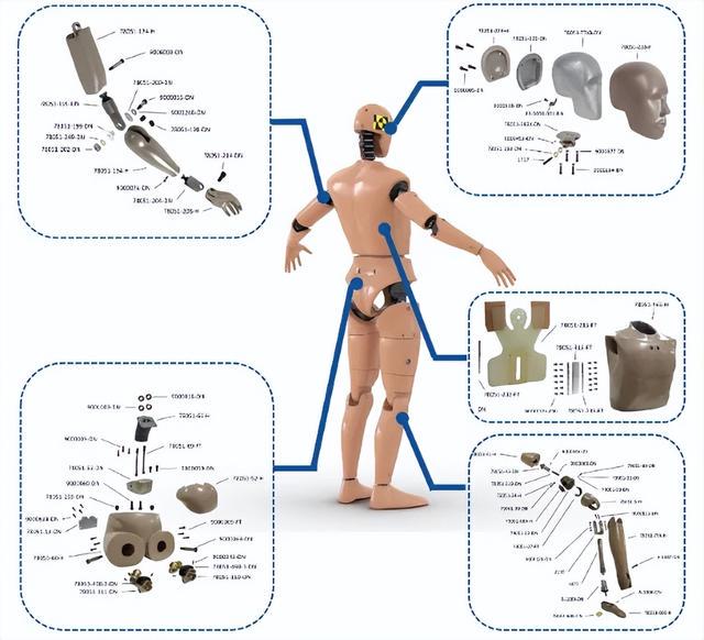 目前,物理碰撞假人主要分为国外产品和中国自主研发两类。其中,国外物理碰撞假人由于研发起步较早,在结构设计、材料工艺和测试方法等方面掌握着200余项核心专利,长期处于垄断地位。同时,国外假人大多身材更高、体重更大、骨密度更高,整体参数和结构主要围绕欧美人群特征开发,对中国乘员的相关安全评价存在一定偏差。