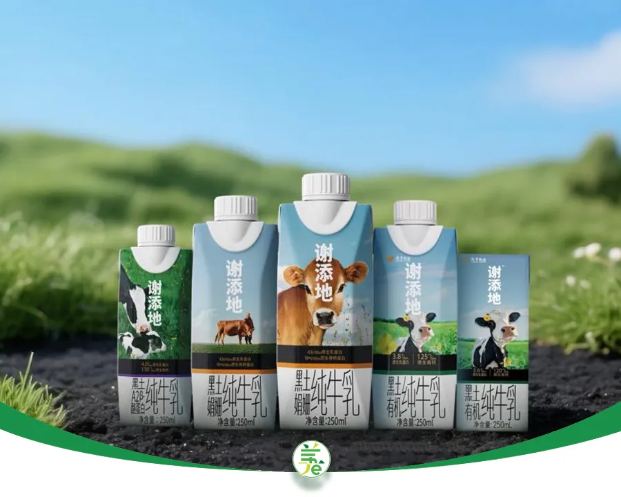 谢添地是越秀辉山于2024年11月推出的高端常温奶品牌,以“东北黑土地牧场”、“全球仅有1%的娟姗牛”和“4.3g/100ml超高蛋白含量”为核心卖点。