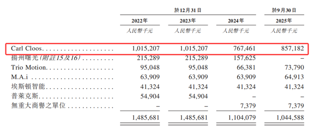 此外,商誉问题同样不容忽视。截至2025年9月末,埃斯顿无形资产及商誉仍有16亿元,其中商誉中CarlCloos就有8.57亿元,且该品牌商誉值于2024年发生了大幅的下降,即便扣除非经常项目,盈利水平也不乐观。
