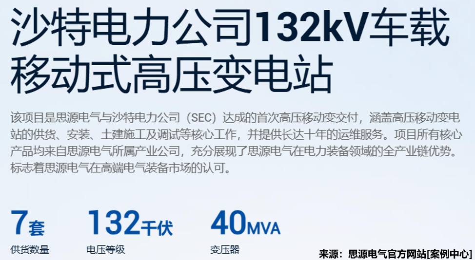 早在2023年,思源电气便成功通过沙特电力公司(SEC)的严苛认证,正式进入其供应链体系。2024年,公司的多款输配电设备便在沙特市场实现突破。