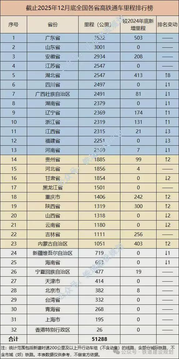 接近一半的省份,高铁运营里程超过了2000公里。