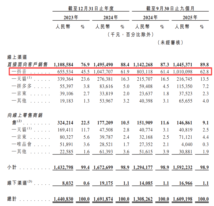 据称,公司拥有超110人的内部直播团队,已完成逾1万场直播,所有抖音店铺均为直营,2025年抖音GMV中自营直播贡献超过93.0%。