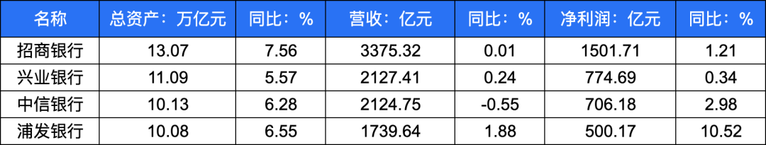 随着浦发银行、中信银行快报此前相继披露,国内总资产超10万亿元的银行已扩充至10家。目前,“10万亿俱乐部”的四大股份行业绩快报已悉数披露完毕。