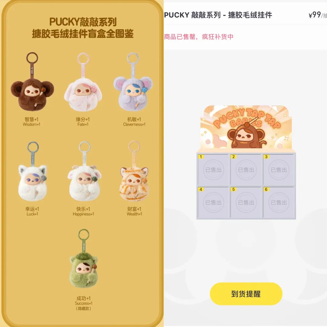 销售火爆、被炒出溢价、话题出圈,PUCKY敲敲系列如今的一系列关键词,都会让人联想到之前的LABUBU。当时,以LABUBU出圈为契机,泡泡玛特股价走出了一波上涨行情;如今,颇有种场景重现的意味。