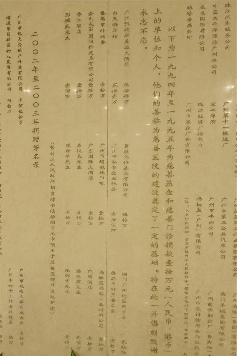 广州慈善医院的捐款墙 图源:时代周报记者 傅一波
